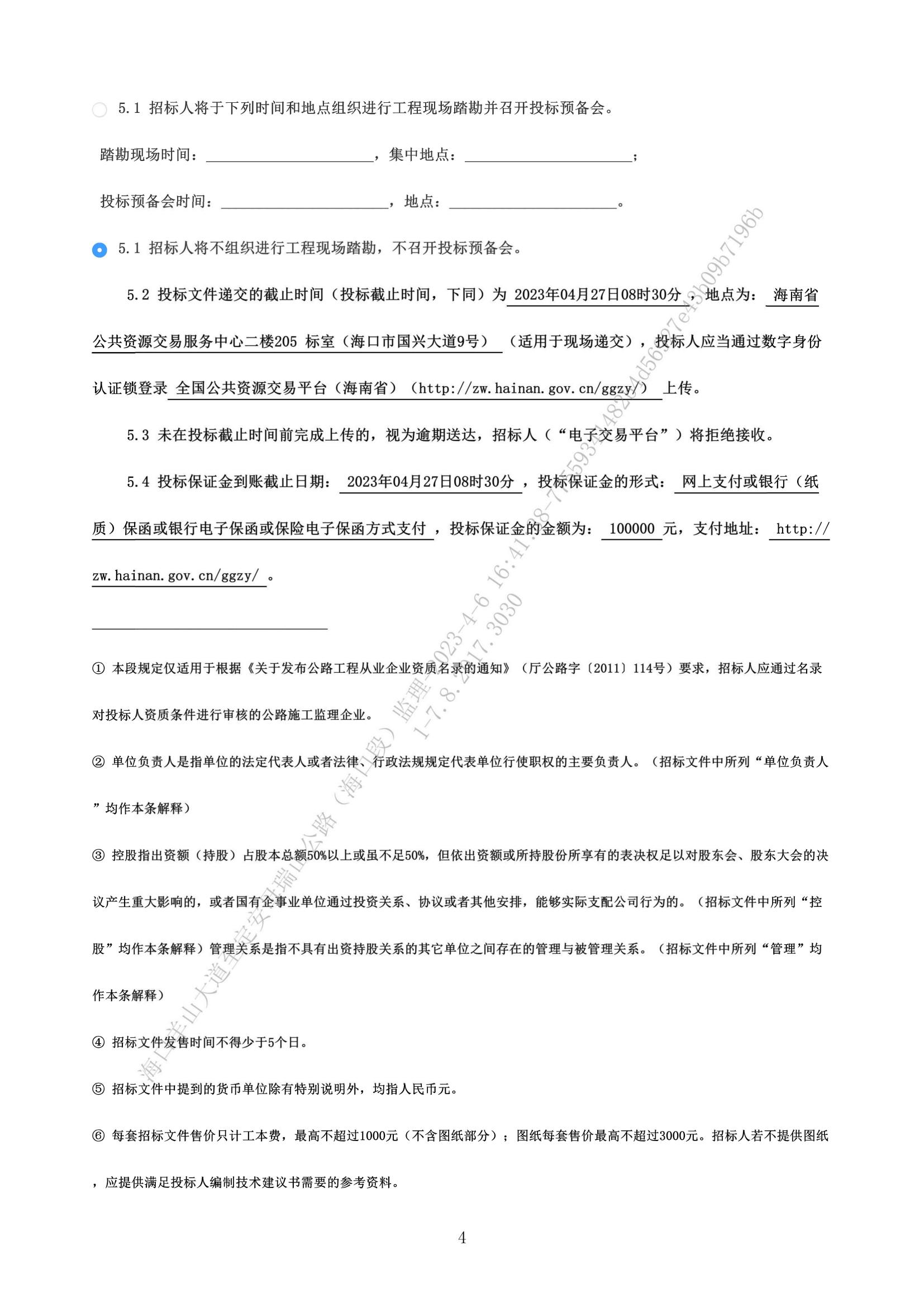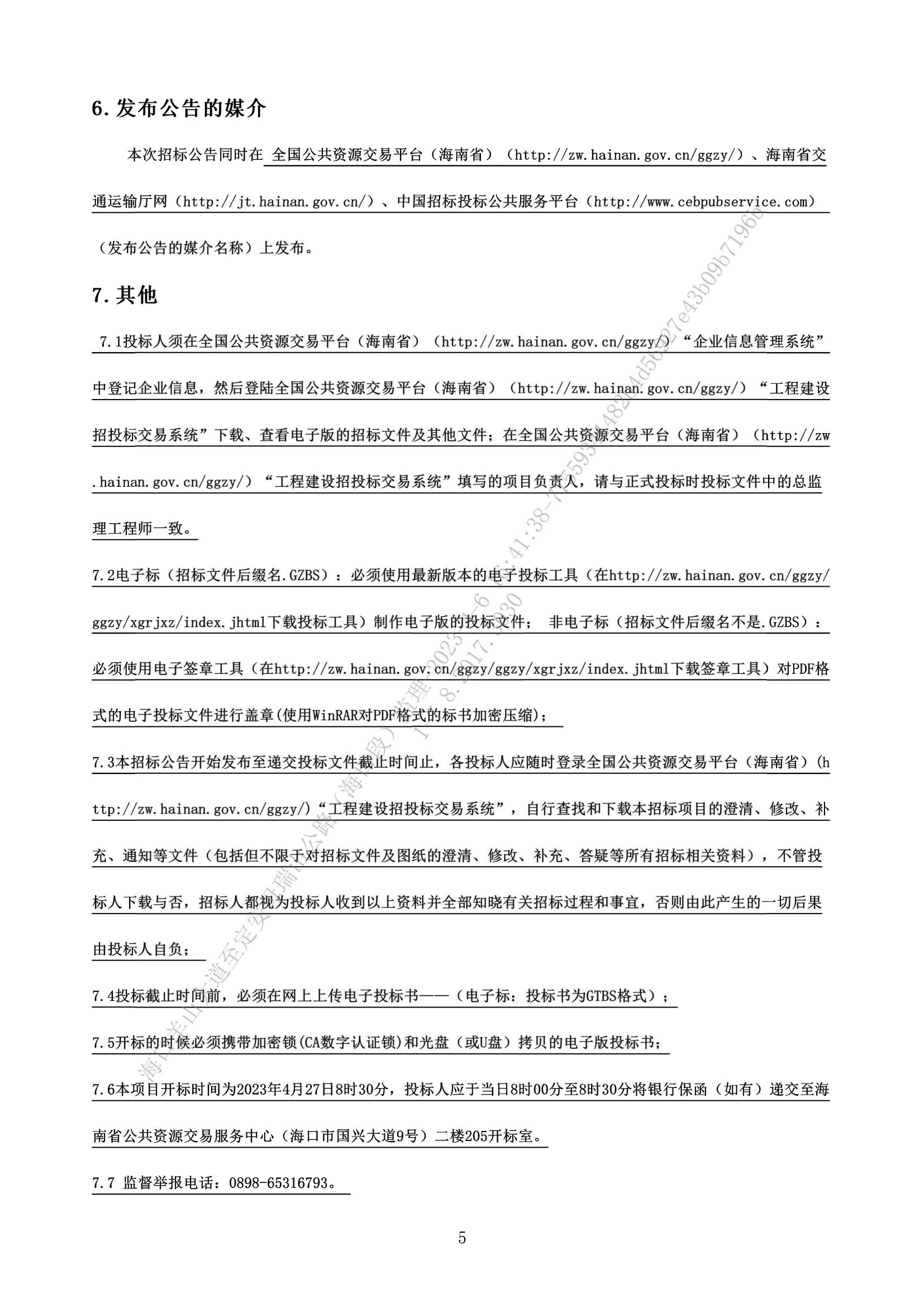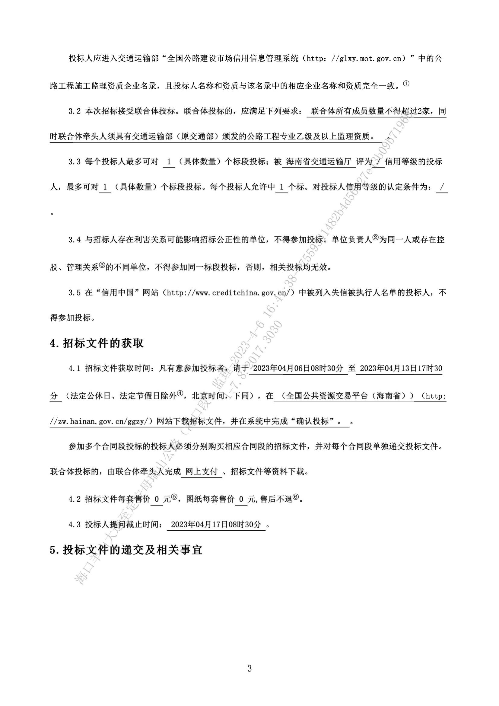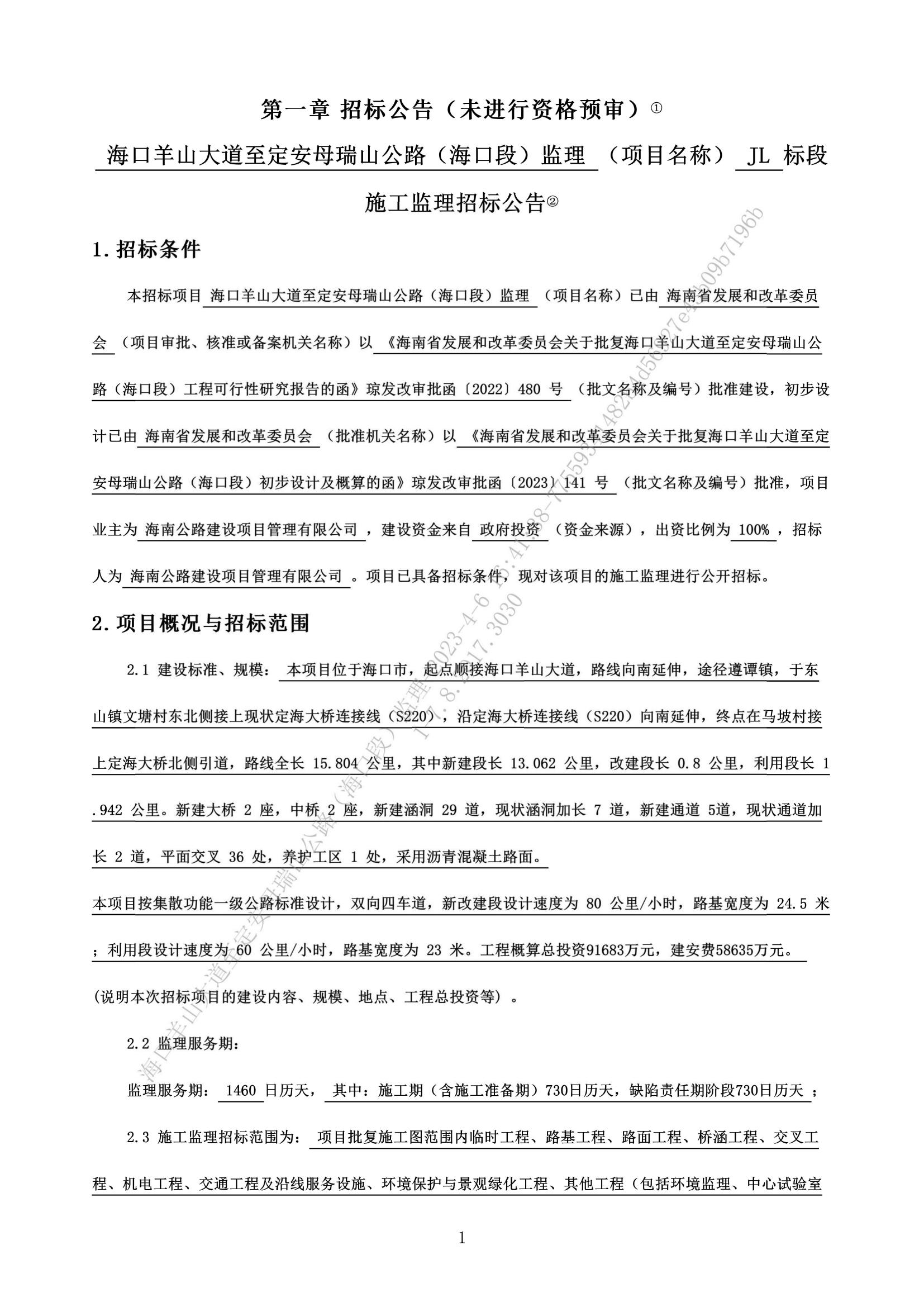 海口羊山大道至定安母瑞山公路(海口段)施工监理招标公告