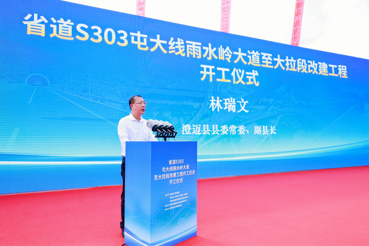 林瑞文在致辞中代表澄迈县委县政府向省道S303屯大线雨水岭大道至大拉段改建工程项目的顺利开工表示祝贺。他强调,省道S303屯大线作为澄迈县重要的公路主干线之一,是沿线乡镇人民对外交流的重要通道。省道S303屯大线的改建,对解决澄迈县的“三农”问题、提高区域竞争力、促进群众增收以及助推澄迈县经济发展具有重要的促进作用。希望项目参建单位本着对澄迈和屯昌人民负责、对历史负责的态度,精心组织、用心施工、细心管理,通过加强与各方的沟通联系,争取有关部门支持和配合,确保工程按期竣工,为全省高质量发展增添一道靓丽风景线。