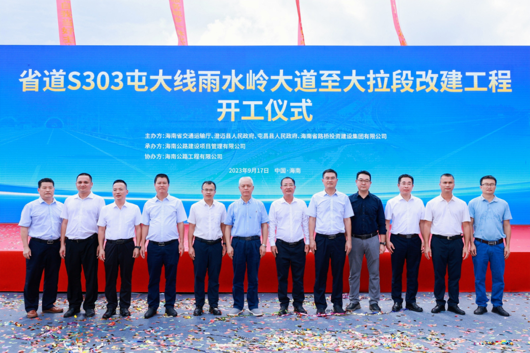 9月17日上午,省道S303屯大线雨水岭大道至大拉段改建工程开工仪式圆满举行。澄迈县委常委、副县长林瑞文,屯昌县委常委、副县长秦能,海南省交通运输厅二级调研员毛卫平,海南路桥集团党委书记、董事长钟世祥,海南省交通规划勘察设计研究院党委书记、院长王泽仁等出席,澄迈县、屯昌县相关部门负责人,各参建单位代表参加。开工仪式由海南路桥集团党委副书记、总经理陈志翔主持,威廉希尔中文网站董事长曾毅代表项目业主向来宾介绍S303屯大线雨水岭大道至大拉段改建工程概况,海南公路工程有限公司党支部书记、董事长杨志华代表施工单位作表态发言。